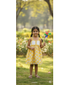 Delight your little one with this adorable handmade crochet frock, designed for girls aged 5 to 7 years. The soft pink crochet top is lovingly handcrafted with breathable yarn, offering comfort and charm in every stitch. The skirt features a light, flowy fabric with a playful sunshine bright yellow print, perfect for twirls, playdates, and picture-perfect moments.